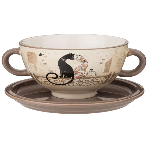 Бульонница с блюдцем "ПАРИЖСКИЕ КОТЫ" 19*14*7 см 550 мл (кор=18шт.) AGNESS 358-1750