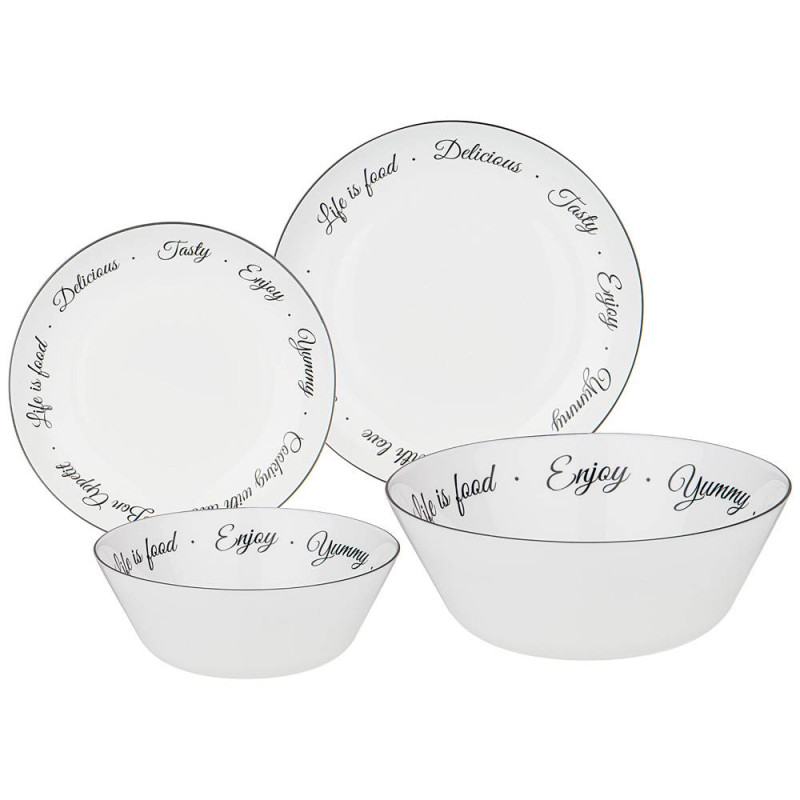 Состав набора: Тарелка обедення 24см - 6 шт, Тарелка десертная 21,5см - 6шт, Тарелка суповая 15см - 6шт, Салатник 19см - 1шт