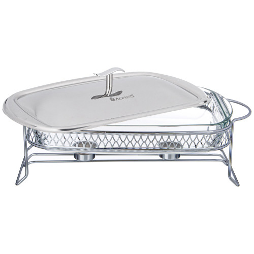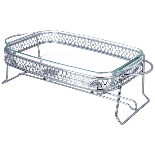 Стеклянную жаропрочную емкость можно использовать для запекания в духовом шкафу (максимальная температура нагрева до 400 С). Стеклянную емкость и крышку можно мыть в посудомоечнйо машине, хромированная подставка не подходит для мытья в посудомоечной машине.