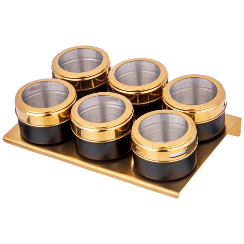 Набор для специй 7 пр. "ЧЕРНОЕ ЗОЛОТО" на магнитах, в т.ч. метал.подставка 20*13*5 см AGNESS 912-034