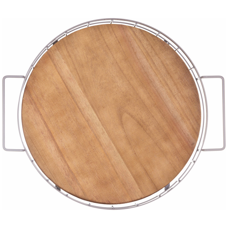Поднос из дерева с металлическими ручками 40*35*7см цвет бежевый ( кор=8шт) AGNESS 917-133