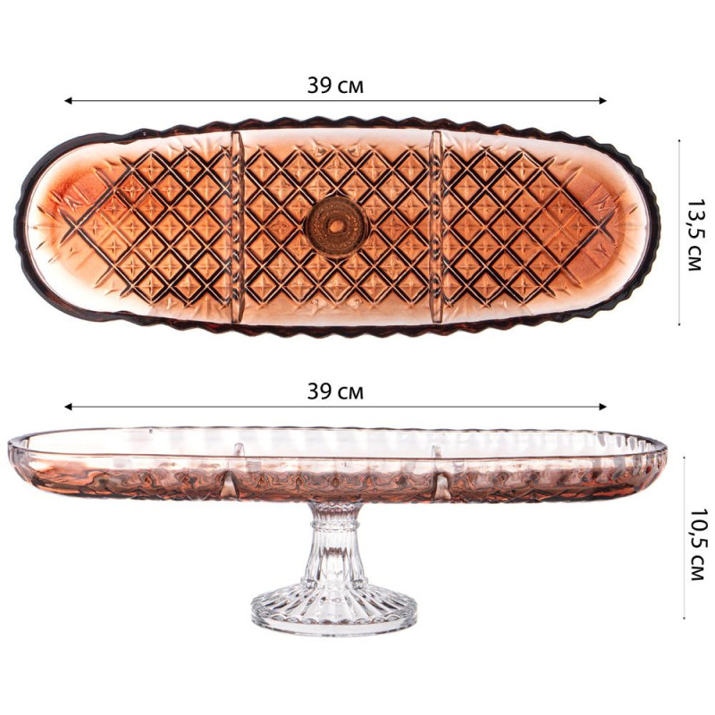 Блюдо на ножке 3 секции brown, 39*14 см ALEGRE GLASS 337-113