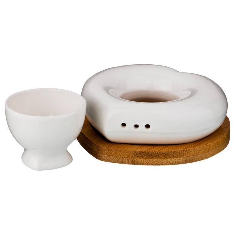2пр.: подставка для яйца + солонка на подставке, фарфор/бамбук