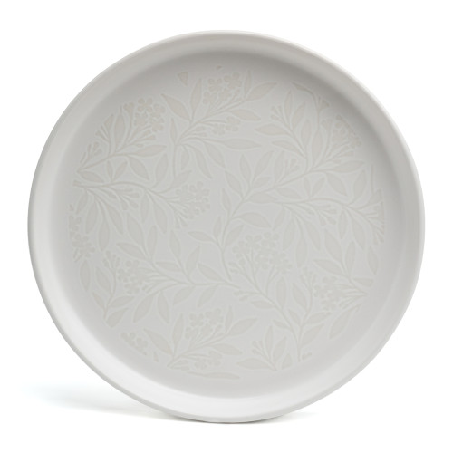 Благодаря сочетанию однотонного фона с красивыми рельефными акцентами в виде трав и цветов, эта посуда удачно впишется в любой интерьер.