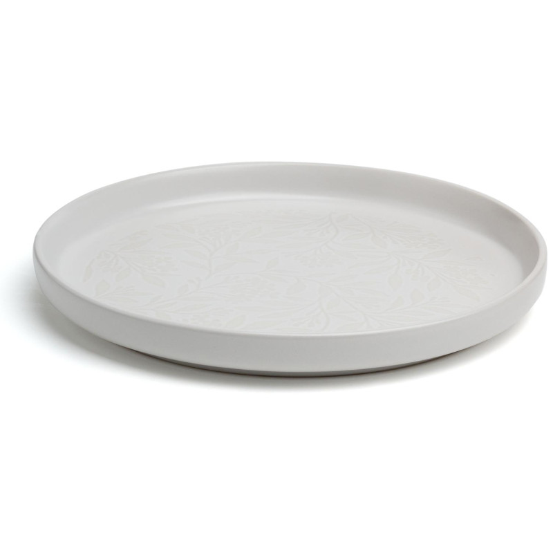 Благодаря сочетанию однотонного фона с красивыми рельефными акцентами в виде трав и цветов, эта посуда удачно впишется в любой интерьер.