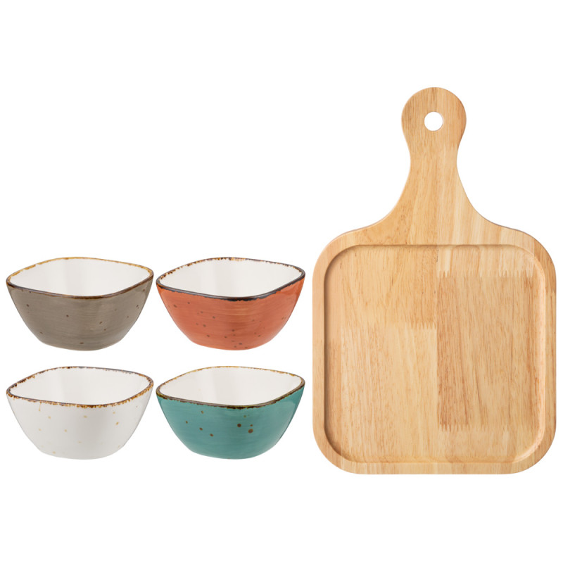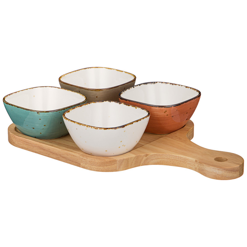 Набор салатников на дерев. подставке "NATURE" 5 предметов (кор=16наб.) BRONCO 263-1269