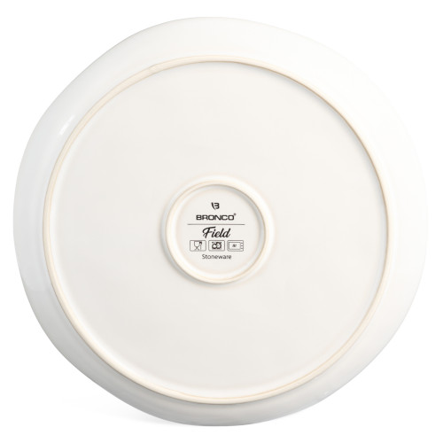 Коллекция ТМ BRONCO "Field" максимально приближена к природе и тяготеет к простым формам и натуральным цветам. Изделия выполнены из высокотемпературной каменной керамики и обожжены при температуре от 1100 до 1400 градусов. При такой температуре вода и воздух из глиняной массы полностью испаряются, и изделия становятся легче, плотнее, крепче, приближаясь по своим характеристикам к фарфору. Современные рестораторы выбирают каменную керамику именно из-за её прочности и стойкости к перепадам температур. Рельефный лиственный узор выполнен на глянцевой реактивной глазури, которой покрыта каменная керамика. Это добавляет изысканности и приятной тактильности. Изделия не впитывают вкусы и запахи продуктов, хорошо сохраняют тепло и холод, прошли сертификацию и безопасны для использования с пищевыми продуктами. Каменную керамику можно мыть в посудомоечной машине, использовать в микроволновой печи.