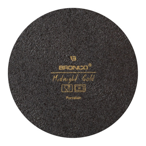 Коллекция "MIDNIGHT GOLD" ТМ BRONCO - это ультрамодная сервировка стола. Черный с золотыми брызгами и окантовкой фарфор. Глубокое матовое покрытие. Каждый предмет коллекции уникален. Тарелки в виде форм для запекания, сковородок, чугунков, элементы поверхности гриль на дне изделий - все это делает Ваш стол неповторимым! Посуда прошла сертификацию. Безопасна для контакта с пищевыми продуктами. С осторожностью использовать изделия в посудомоечной машине и микроволновой печи по причине возможного повреждения золотого декоративного покрытия. Рекомендуется применять мягкие средства для мытья в посудомоечной машине.
