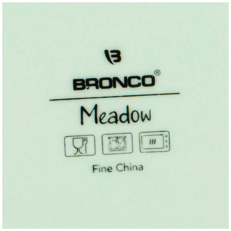 ТМ BRONCO модная коллекция "MEADOW" с ботаническим рисунком. Новый имидж посуды на каждый день! Ручная работа. Упрочненный фарфор. Посуда прошла сертификацию. Безопасна для контакта с пищевыми продуктами. Современные формы и удобные размеры. Отлично сочетается с натуральными зеленым, мятным и кремовым цветами. Неповторимая сервировка. Тарелки без деревянной стойки можно пользовать в микроволновой печи, ставить в холодильник и мыть в посудомоечной машине.