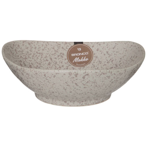 ТМ BRONCO коллекция MOKKO из высокотемпературного фарфора. Специальная реактивная глазурь придает поверхности гранитный узор на всем её протяжении, как если бы он был вырезан из цельного блока скалы. Идея дизайна – создать фарфор натуралистичным и очень близким к природным материалам по своей текстуре, цвету и внешнему виду. Коллекция несомненно понравится самым взыскательным модникам. Посуда хороша для ежедневного использования, легка в уходе. Вся продукция сертифицирована и безопасна для контакта с пищевыми продуктами. Разрешено использовать в духовом шкафу, микроволновой печи, можно мыть в посудомоечной машине. Готовьте с удовольствием!