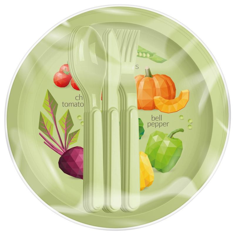 222123320/04 Набор для пикника с декором, 12 предметов на 3 персоны (салатовый)