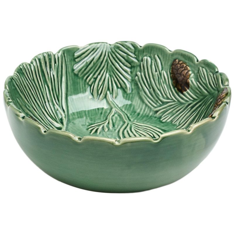 Наша посуда отличается насыщенными зелеными оттенками, которые ассоциируются с зимним лесом и свежестью природы. Объемные шишки и сосновые ветки, изящно оформленные на поверхности изделий, создают поистине волшебную атмосферу, способную перенести вас в сказочный лес. Эти элементы дизайна представлены с особым вниманием к деталям, что подчеркивает уникальность каждого изделия.