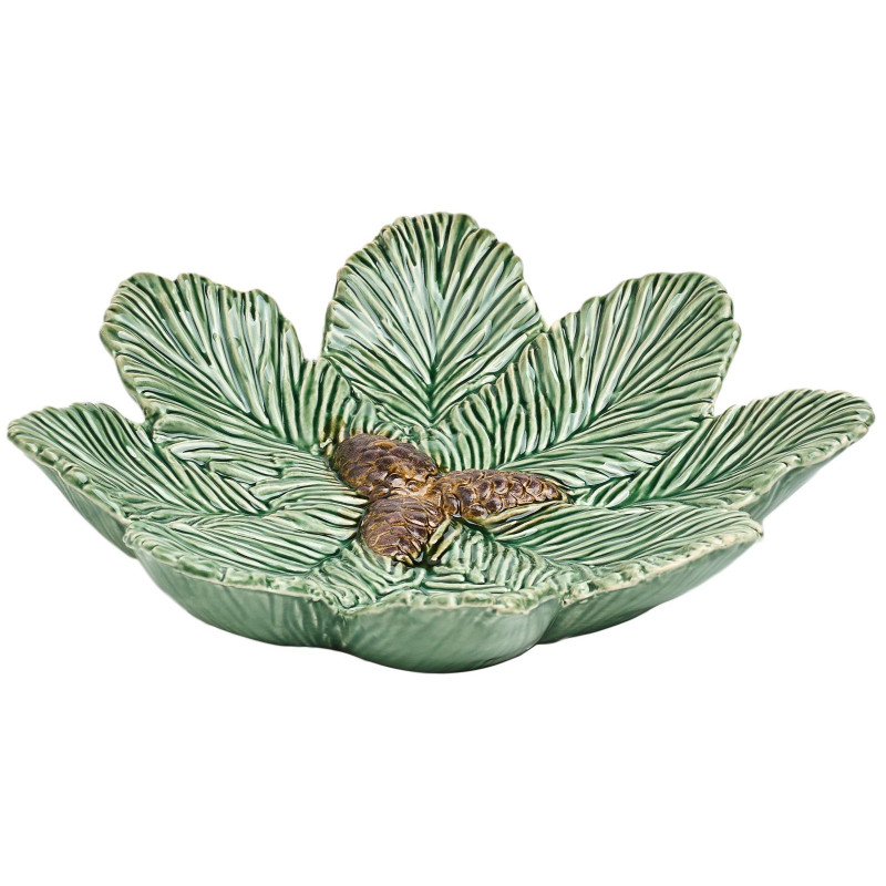 Наша посуда отличается насыщенными зелеными оттенками, которые ассоциируются с зимним лесом и свежестью природы. Объемные шишки и сосновые ветки, изящно оформленные на поверхности изделий, создают поистине волшебную атмосферу, способную перенести вас в сказочный лес. Эти элементы дизайна представлены с особым вниманием к деталям, что подчеркивает уникальность каждого изделия.