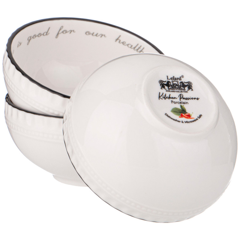 ТМ LEFARD "KITCHEN PASSIONS" предлагает новую коллекцию посуды всем, для кого процесс приготовления стал страстью, кто с удовольствием собирает за своим столом родных и близких и радует их кулинарными шедеврами. Качественный прочный фарфор, гладкая и сверкающая глазурь, новые рельефные формы, удобные и оптимальные размеры тарелок, салатников, чайных пар, любимые дизайны с изображением лимонов, лаванды, оливок, овощей… Яркая упаковка. Отличный подарок. Все изделия прошли сертификацию, безопасны при контакте с пищевыми продуктами. Можно смело мыть в посудомоечной машине, использовать в микроволновой печи.