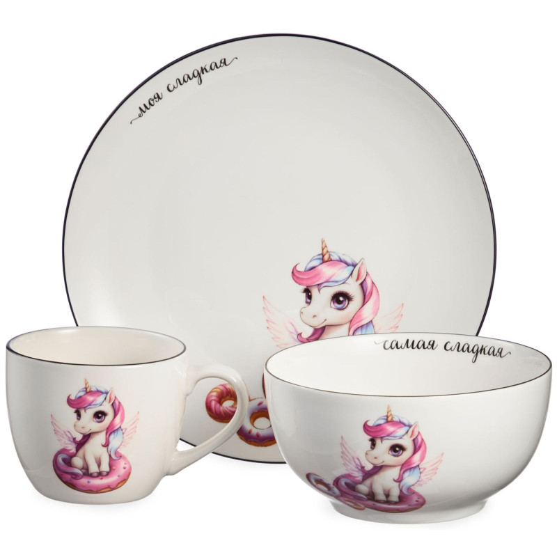 Набор посуды "САМАЯ СЛАДКАЯ" 3 пр. (кружка 240мл, салатник 500мл, тарелка 20,5см) LEFARD 260-1072