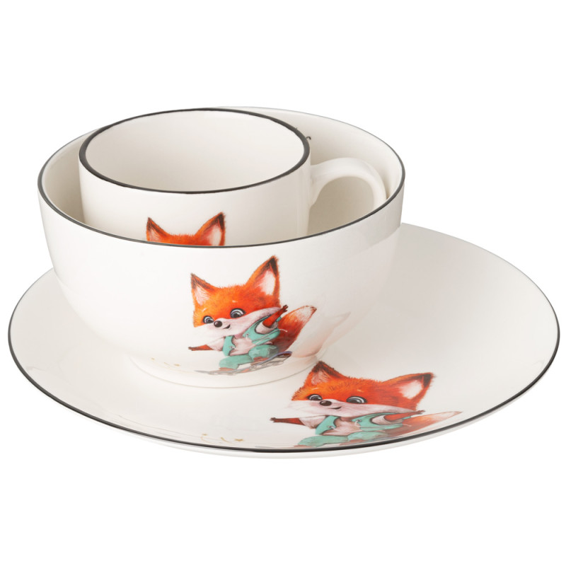 ТМ Lefard рада представить набор детской посуды. Набор детской посуды выполнен из качественного фарфора и декорирован милым и привлекательным рисунком. Привычная еда покажется вкуснее, когда процесс кормления сопровождается игрой и сказками. Красочная посуда - залог хорошего настроения и аппетита вашего малыша! Набор состоит из 3-х предметов: кружка - 220 мл, салатника – 470 мл и тарелки - диаметр 20 см. Подарочная красочная коробка гарантирует вау-эффект при дарении! Вся продукция прошла сертификацию и безопасна для контакта с пищевыми продуктами. Эту посуду можно мыть в посудомоечной машине и подходит для СВЧ.