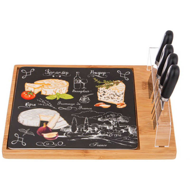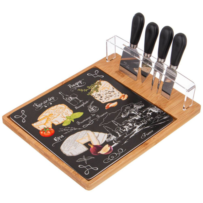 Набор для сыра "СЕКРЕТНЫЕ ИНГРЕДИЕНТЫ" 5 предметов черный 28*23 см (кор=12наб.) LEFARD 263-1180
