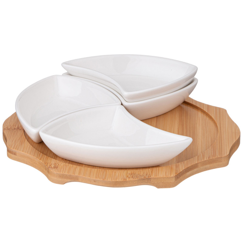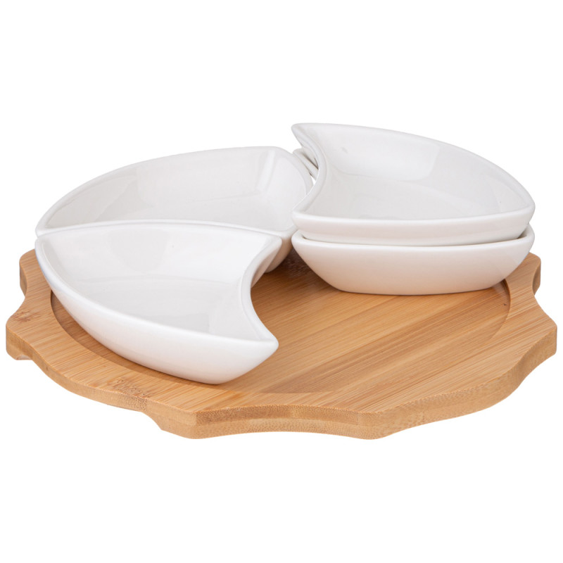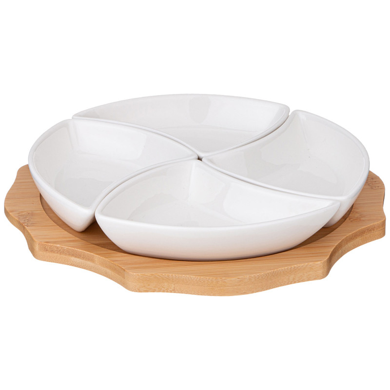 Менажница "NATIVE" 4 секции на дерев.подставке 24,2*4 см (кор=12шт.) LEFARD 263-1348