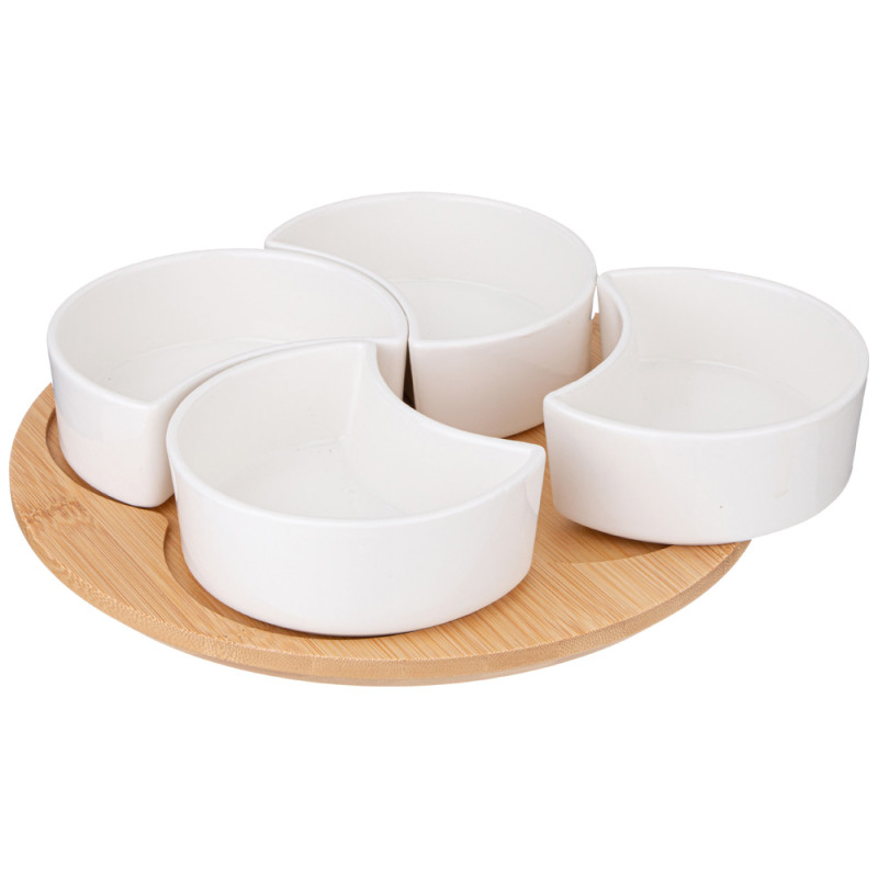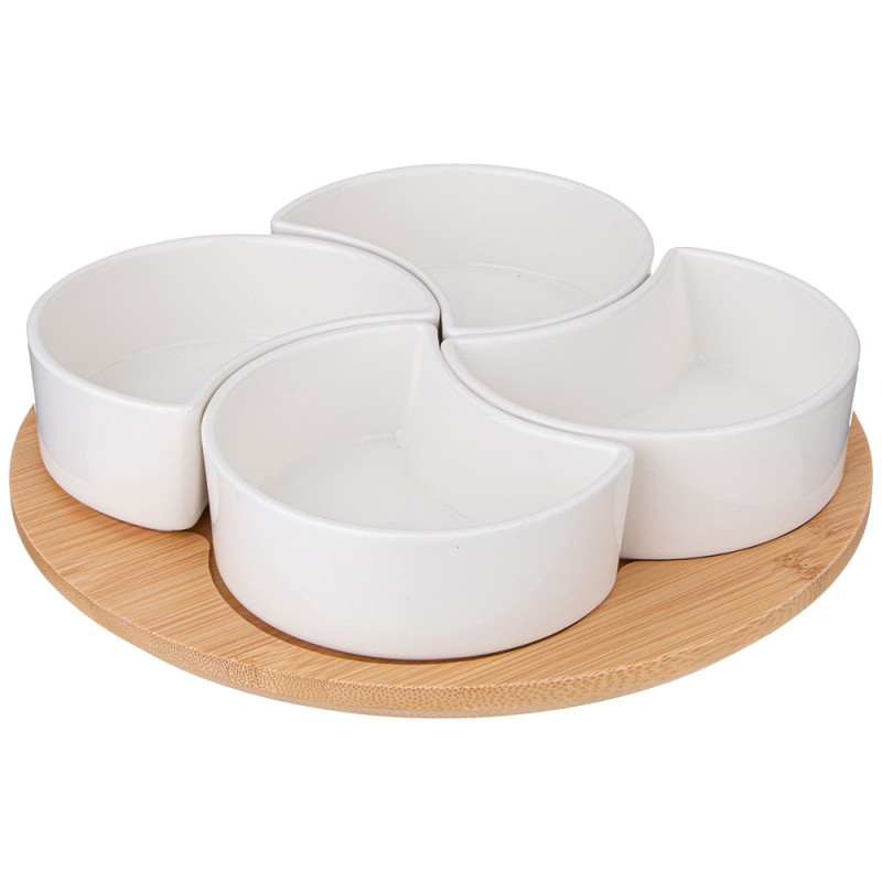 Менажница "NATIVE" 4 секции на дерев.подставке 23*6,5 см (кор=8шт.) LEFARD 263-1349