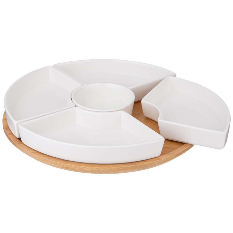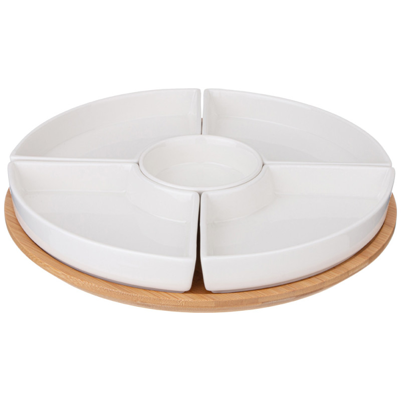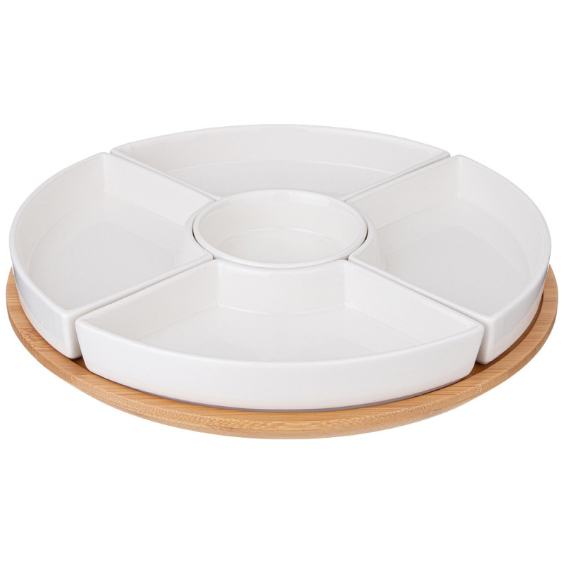 Менажница "NATIVE" 5 секций на дерев.подставке 28*5,6 см (кор=6шт.) LEFARD 263-1350