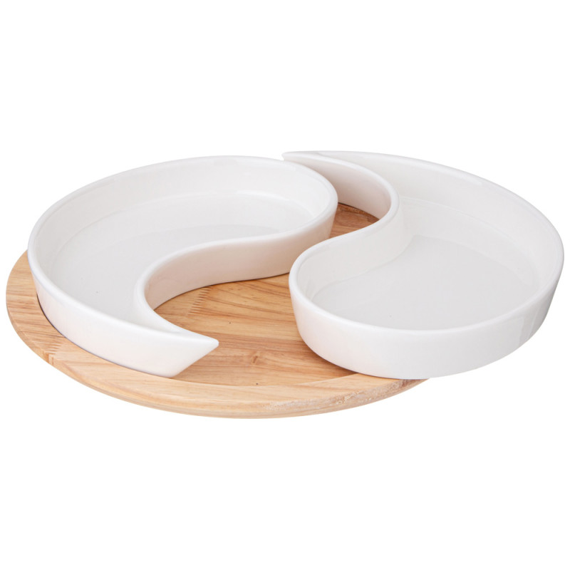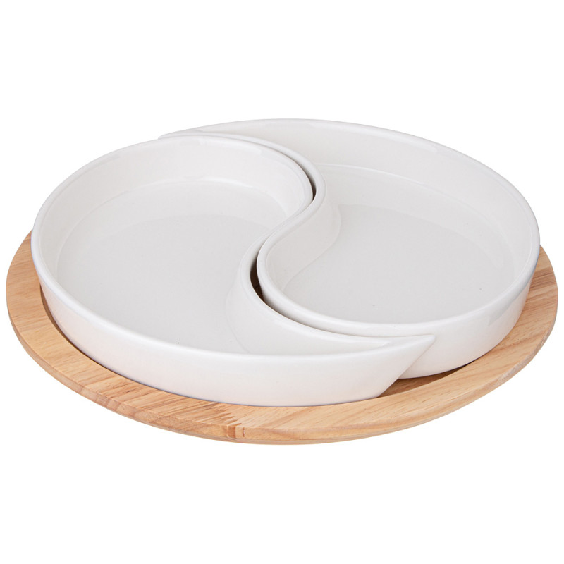 Менажница "NATIVE" 2 секции на дерев.подставке 26*4 см (кор=8шт.) LEFARD 263-1352