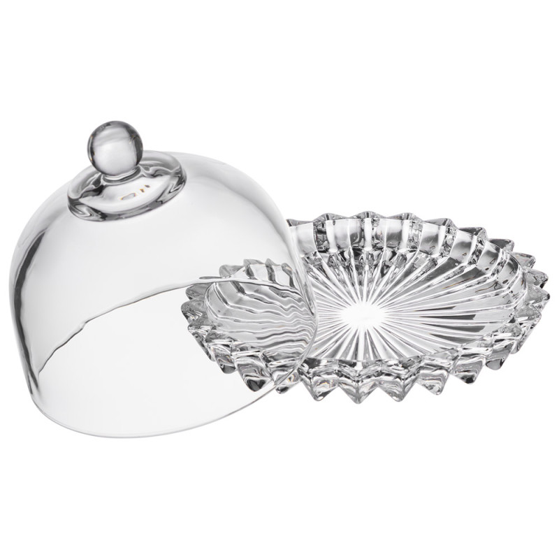 Лимонница: Элегантный купол с шарообразной ручкой — идеальный акцент для фруктов, сладостей или сыров. Прозрачность позволяет любоваться содержимым, а форма надежно сохраняет свежесть.