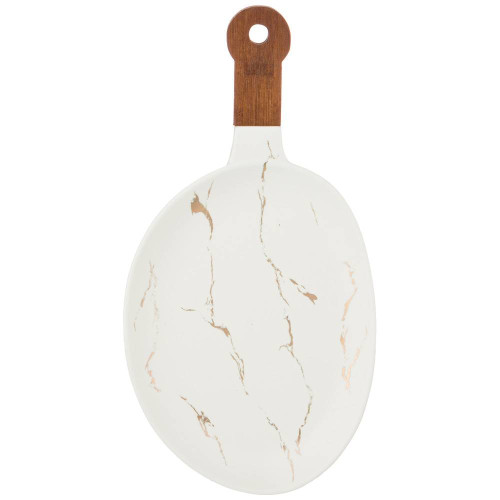 Блюдо для сервировки с деревянной ручкой коллекция "ЗОЛОТОЙ МРАМОР" цвет: white 37,5*19*2,4 см LEFARD 412-125