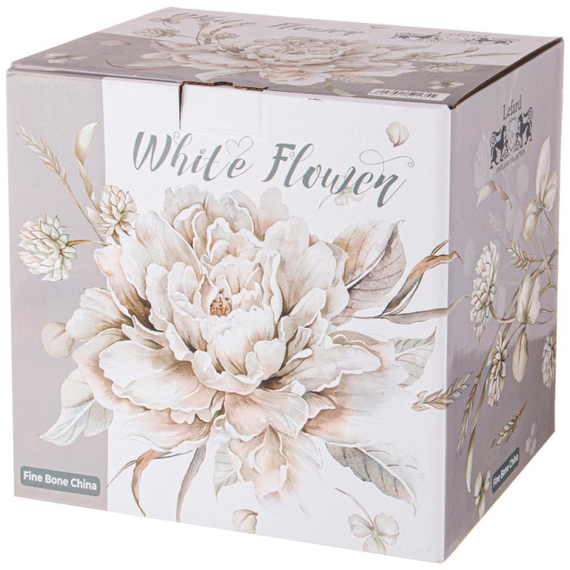 ТМ Lefard - эксклюзивная коллекция "WHITE FLOWER" из белоснежного костяного фарфора. Современные формы, удобные ручки, оптимальные объемы. Белая, серая и голубая цветовые гаммы прекрасно сочетаются и дополняют друг друга. Роскошный белый цветок завораживает красотой и объемом. Красочная индивидуальная упаковка. Это прекрасный подарок для себя и своих близких! Посуда прошла сертификацию. Безопасно для контакта с пищевыми продуктами. Мыть мягкими моющими неабразивными средствами. Можно смело использовать в микроволновой печи, мыть в посудомоечной машине.