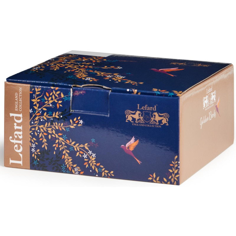 ТМ LEFARD роскошная коллекция «Golden Birds» яркой сказочной посуды из качественного фарфора. Перенесите себя в новый яркий мир, созданный для традиционного чаепития. Необычайно красивая, изящная, изысканная и утонченная посуда с изображением экзотических птиц и растений. Краски рисунка сохраняют яркость даже после длительного использования. Прекрасный подарок. Изделия упакованы в фирменную цветную коробку. Нельзя использовать в микроволновой печи. Разрешена только деликатная ручная мойка.