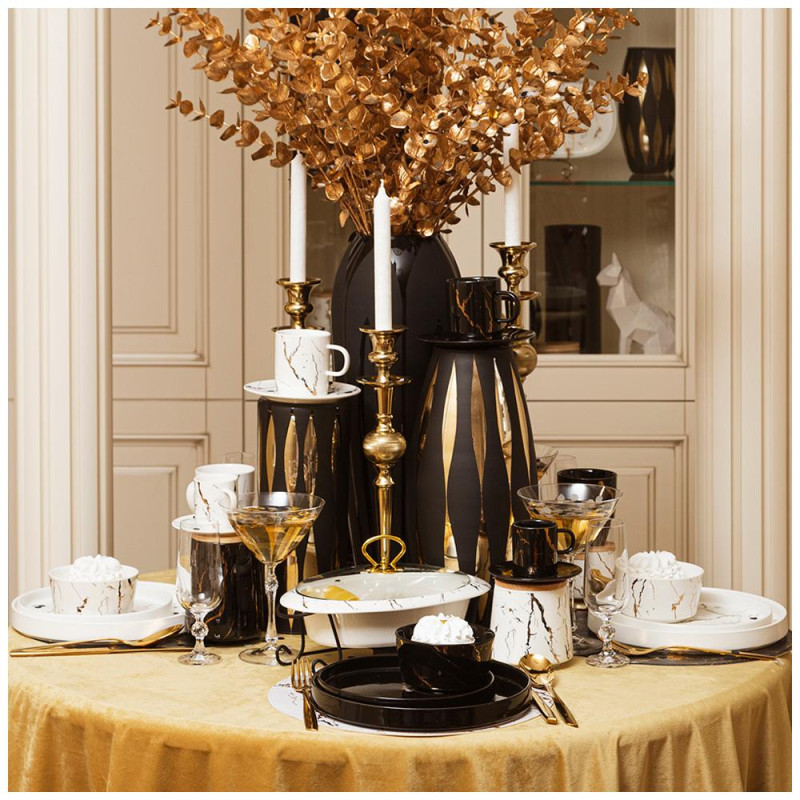 Коллекция "Fantasy" ТМ LEFARD - это модная сервировка стола и стильный кухонный интерьер в классическом белом с золотом цвете. Блюда и формы различных размеров, менажницы на бамбуковых подставках, банки, тарелки и салатники различного назначения, чайники, чайные пары и кружки выполнены из упрочненного фарфора. Четкие линии, сверкающее глянцевое покрытие. Вы и Ваш стол неотразим! Посуда прошла сертификацию. Безопасна для контакта с пищевыми продуктами. Можно использовать в микроволновой печи. Не рекомендуется мыть в посудомоечной машине.