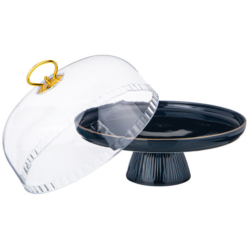 Тортовница " HERBAL" на ножке 28*23, 5 см с пластиковой крышкой синяя (кор=6шт.) LEFARD 42-491