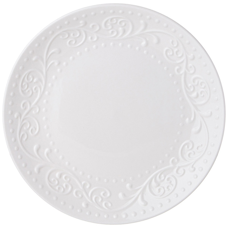 ТМ LEFARD рекомендует белую рельефную посуду коллекции FLORAL из фарфора Fine China, более простого и дешёвого нового материала, где в составе имеется искусственный минерал, который улучшает характеристики фарфора, делая его прочнее, тоньше и легче. Красивый орнамент, изящный внешний вид, удобные формы, оптимальные размеры, широкий ассортимент. Все это сделало коллекцию незаменимой на кухне. Большие глубокие овальные и круглое блюда, салатники разных размеров, тарелки, чайные пары и кружки хороши для подачи самых разнообразных блюд со всех концов света. Все товары сертифицированны и безопасны для контакта с продуктами. Изделия можно смело мыть в посудомоечной машине. Разрешено использование в микроволновой печи.
