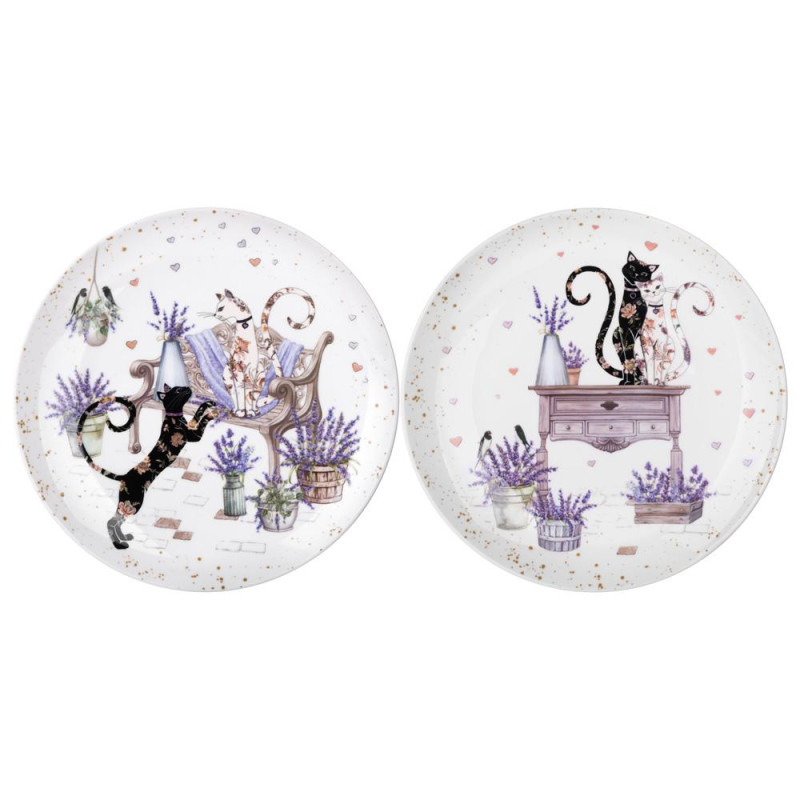Набор тарелок закусочных "ЛАВАНДОВЫЕ КОТЫ" 2 шт. 20,5*2 см (кор=18наб.) LEFARD 425-166