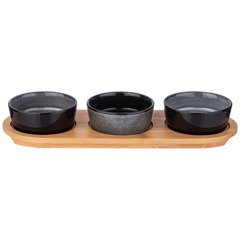 Набор соусников "GRAPHITE" 3 шт. 60 мл 26*9,2*3,5 см на дер. подставке (кор=36наб.) LEFARD 474-241