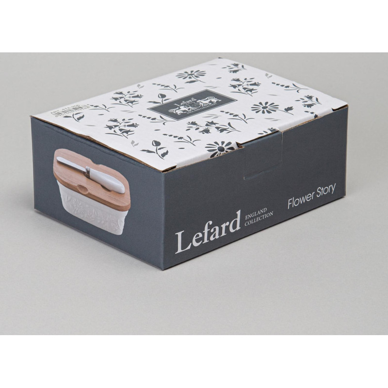 Масленка "FLOWERS STORY" с дер. крышкой, ножом для масла 15*11*6 см 330 мл LEFARD 474-256
