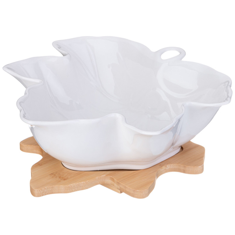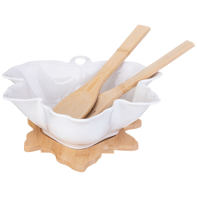 Салатник "NATIVE" 24 см с ложкой и вилкой на дерев. подставке (кор=6шт.) LEFARD 587-186