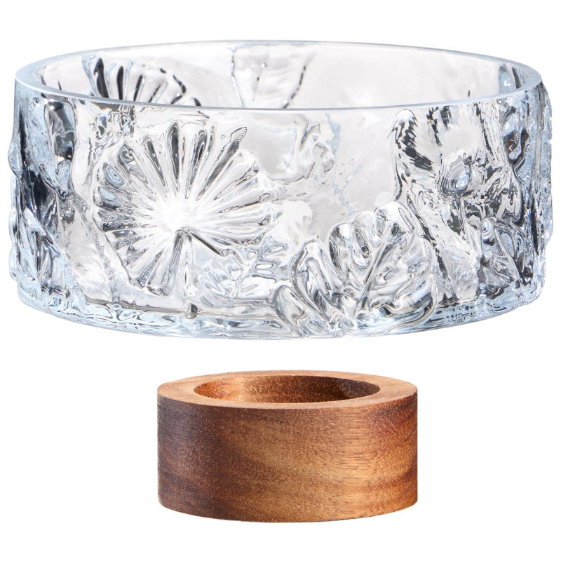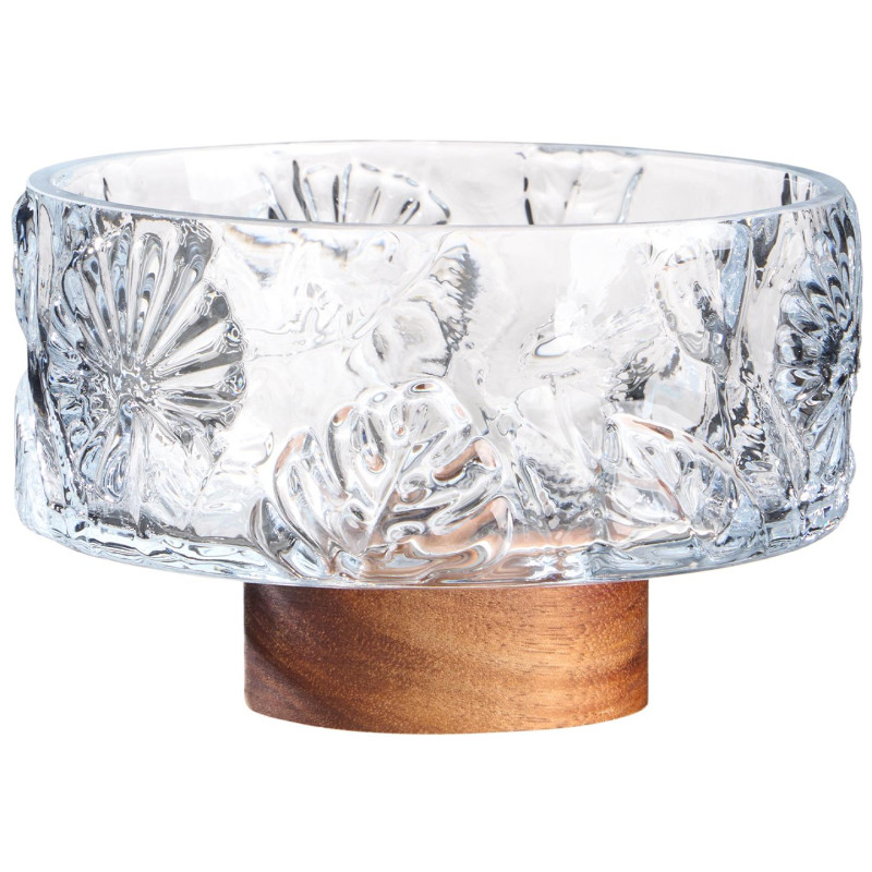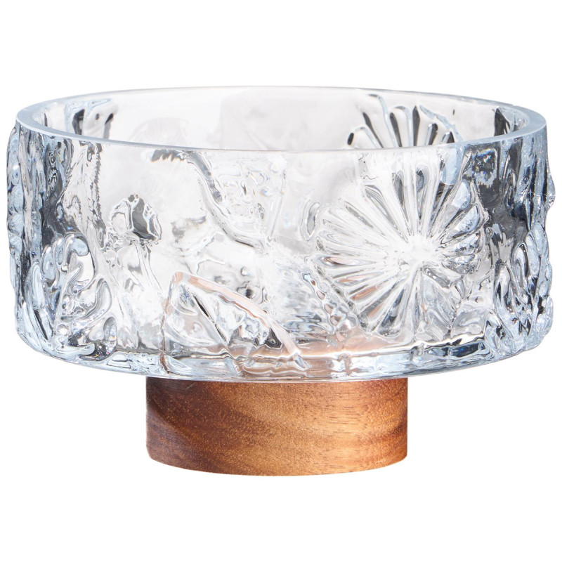 Пробуждайте чувства и создавайте уютную атмосферу с нашей красивой конфетницей, выполненной из экологически чистого стекла без содержания свинца. Ее утончённый дизайн с рельефными узорами и теплым деревянным основанием из акации делает каждое чаепитие особенным.