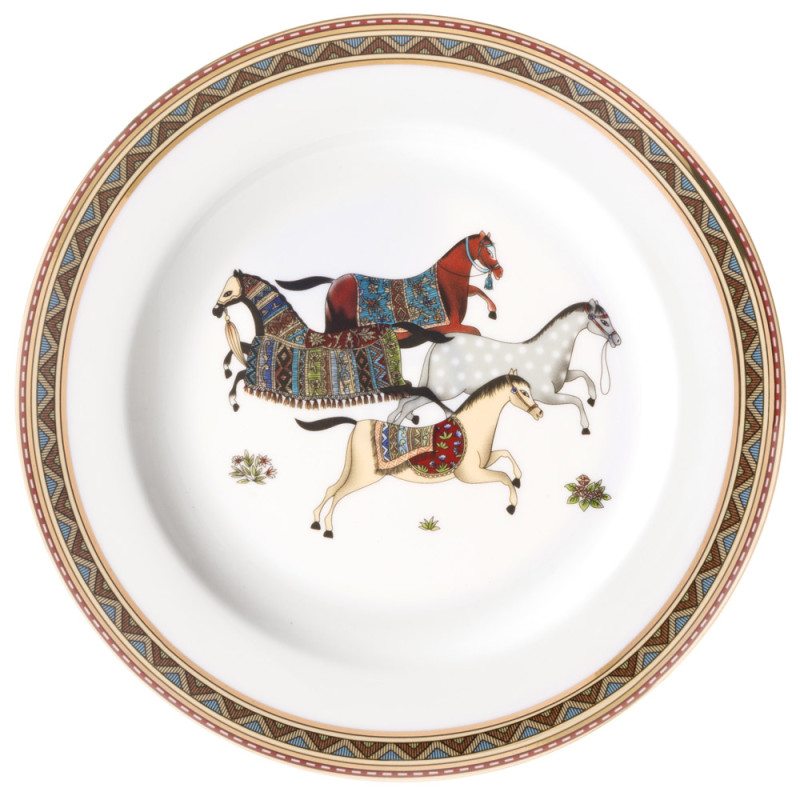 ТМ Lefard коллекция Passage мужественная и стильная. Движения лошадей эластичные, элегантные с активным импульсом. Каждая диагональная пара ног поднимается и ставится в очень точном ритме и с подвисанием. Шея лошади приподнята и округлена, затылок находится в высшей точке, голова опущена почти вертикально. Этот ритм завораживает. Посуда для сервировки стола из тонкостенного упрочненного фарфора неповторима. Прямые формы. Декор с богатым орнаментом и золотой окантовкой. Посуда прошла сертификацию. Безопасна для контакта с пищевыми продуктами. Отличный подарок. Не использовать в микроволновой печи, не рекомендуется мыть в посудомоечной машине.
