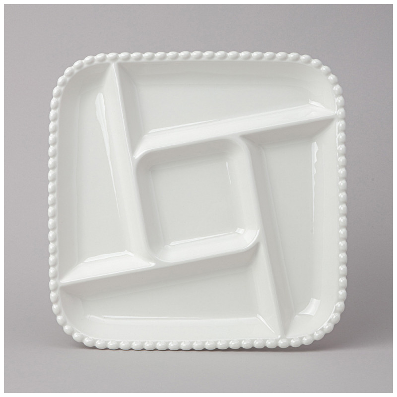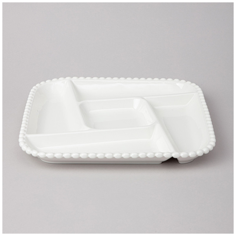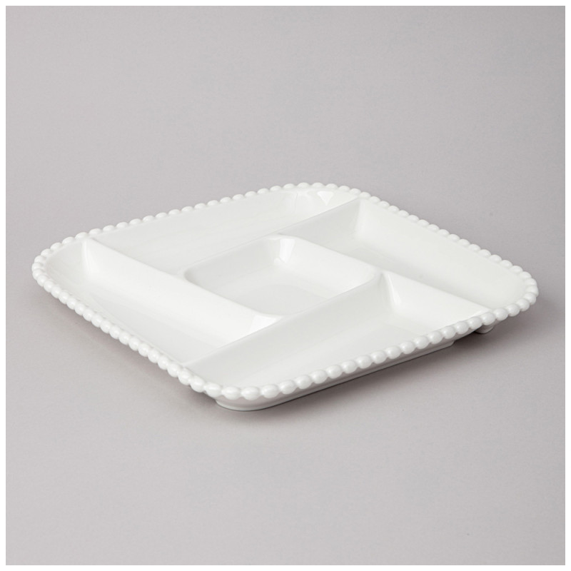 ТМ LEFARD коллекция "PEARL - ЖЕМЧУЖИНА" - трендовая, белоснежная, с оригинальным рельефом по краю в виде горошин, базовая для любой сервировки, выполнена из упрочненного фарфора. Менажница - это удобная ёмкость, которая экономит пространство на столе и делает сервировку эффектной и необычной. Главная задача сервировочной посуды – разгрузить стол и подать закуски красиво. На закусочном столе это холодные или горячие закуски, салаты, рыба, грибы; на чайном – конфеты, орешки, сладости.