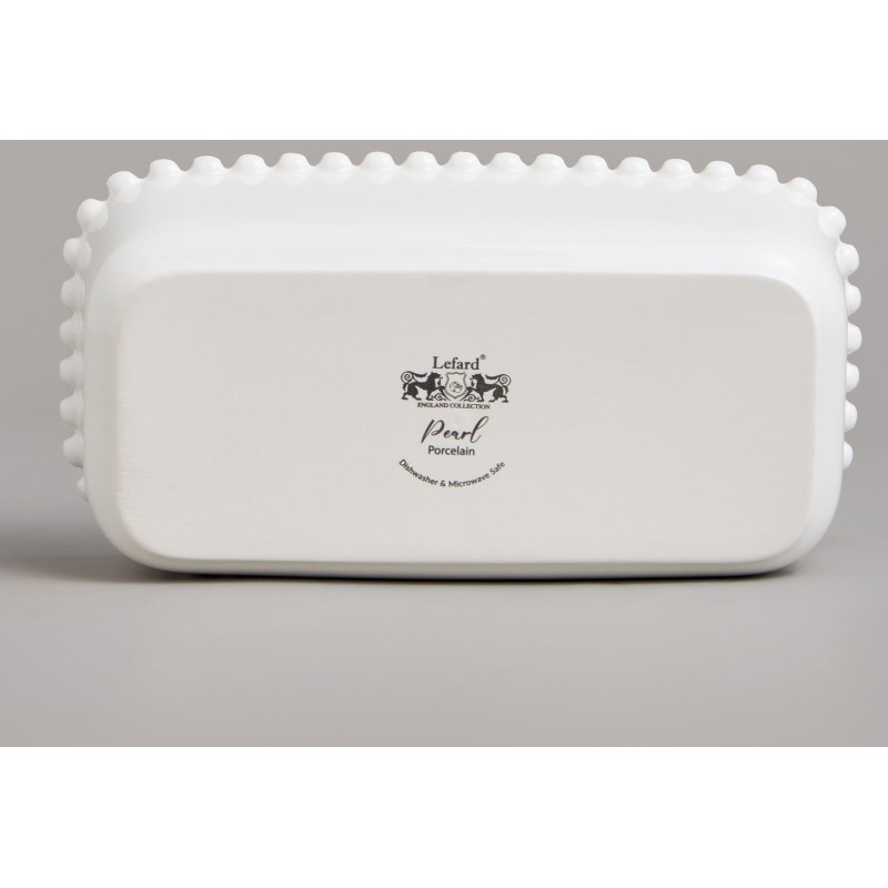ТМ LEFARD коллекция "PEARL - ЖЕМЧУЖИНА" - трендовая, белоснежная, с оригинальным рельефом по краю в виде горошин, базовая для любой сервировки, выполнена из упрочненного фарфора. Паштетница – это полезный инструмент для приготовления, хранения и красивой подачи блюда. Ваш стол неотразим! Удобные формы и размеры. Прекрасно сочетается с любой декорированной посудой. Можно мыть в посудомоечной машине, использовать в микроволновой печи.