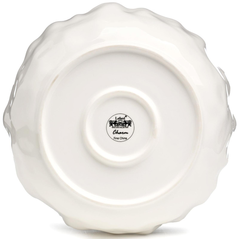ТМ LEFARD "Charm" - добавьте нотку изысканности и утонченности в сервировку вашего стола с этой очаровательной коллекцией. Белоснежный "мятый" фарфор с волнистым краем и деликатной тонкой окантовкой - идеальный баланс между простотой и элегантностью. Глянцевая глазурь придает поверхности особый блеск, делая изделие приятным как для глаз, так и на ощупь, а тончайшая золотая окантовка, которая нанесена вручную, подчеркивает утонченность и добавляет праздничного шика. Коллекция подходит как для повседневного использования, так и для особых случаев. Не рекомендуется использовать в посудомоечной машине и микроволновой печи для сохранения целостности золотой окантовки. Вся посуда прошла сертификацию и безопасна для контакта с пищевыми продуктами.