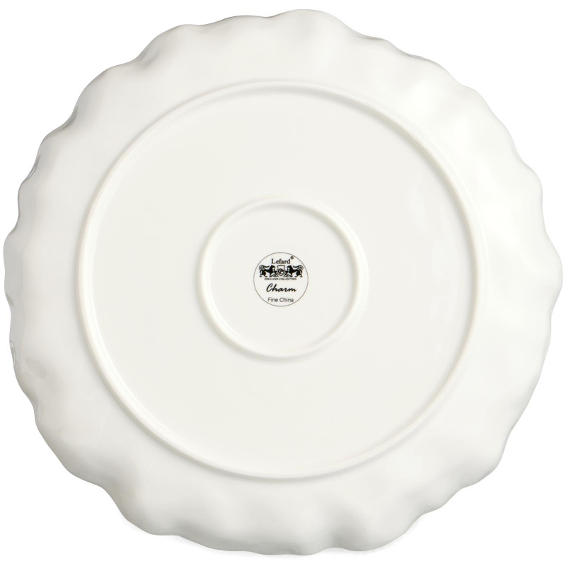 ТМ LEFARD "Charm" - добавьте нотку изысканности и утонченности в сервировку вашего стола с этой очаровательной коллекцией. Белоснежный "мятый" фарфор с волнистым краем и деликатной тонкой окантовкой - идеальный баланс между простотой и элегантностью. Глянцевая глазурь придает поверхности особый блеск, делая изделие приятным как для глаз, так и на ощупь, а тончайшая золотая окантовка, которая нанесена вручную, подчеркивает утонченность и добавляет праздничного шика. Коллекция подходит как для повседневного использования, так и для особых случаев. Не рекомендуется использовать в посудомоечной машине и микроволновой печи для сохранения целостности золотой окантовки. Вся посуда прошла сертификацию и безопасна для контакта с пищевыми продуктами.