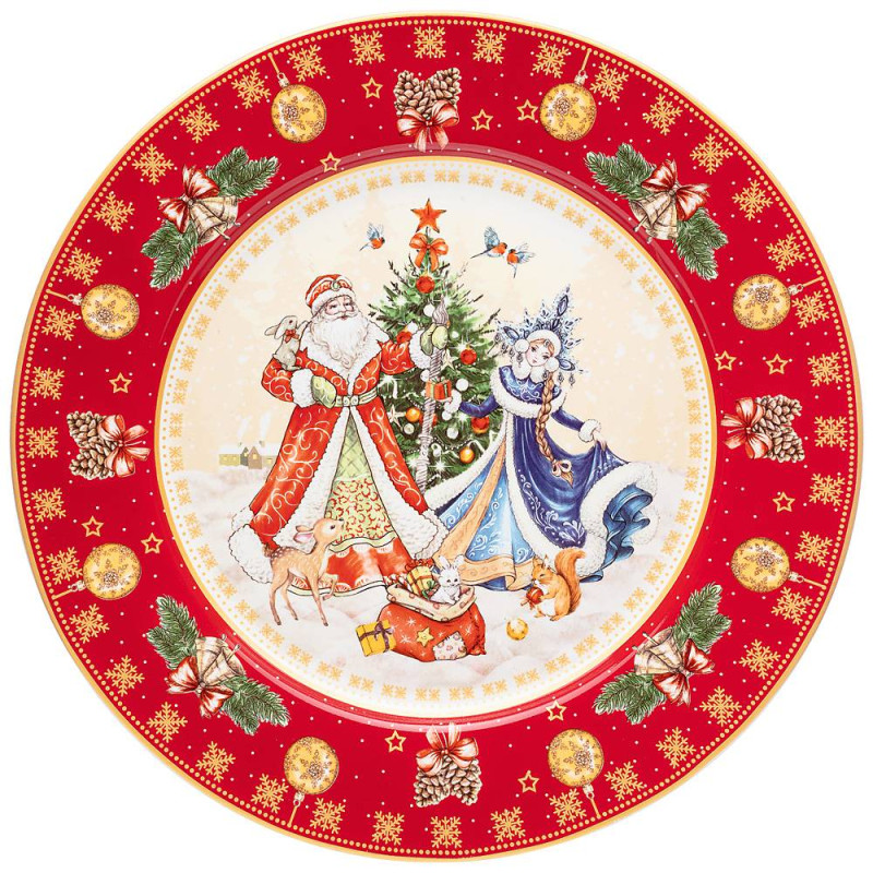 Тарелка обеденная "ДЕД МОРОЗ И СНЕГУРОЧКА" 27 см красная (кор=18шт.) LEFARD 85-1716