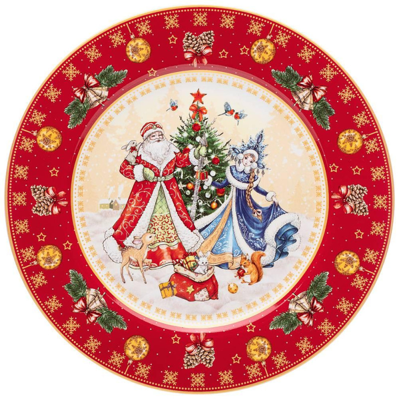 Тарелка закусочная "ДЕД МОРОЗ И СНЕГУРОЧКА" 20,5 см красная (кор=18шт.) LEFARD 85-1717