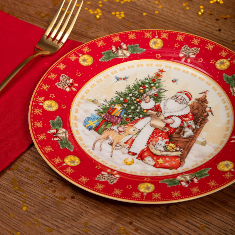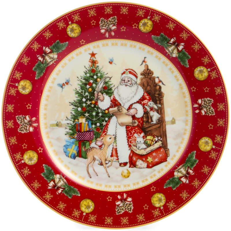 Тарелка закусочная "ДЕД МОРОЗ" 20,5 см красная (кор=18шт.) LEFARD 85-1720