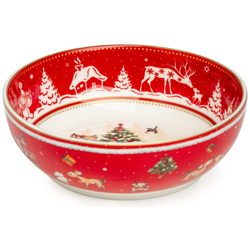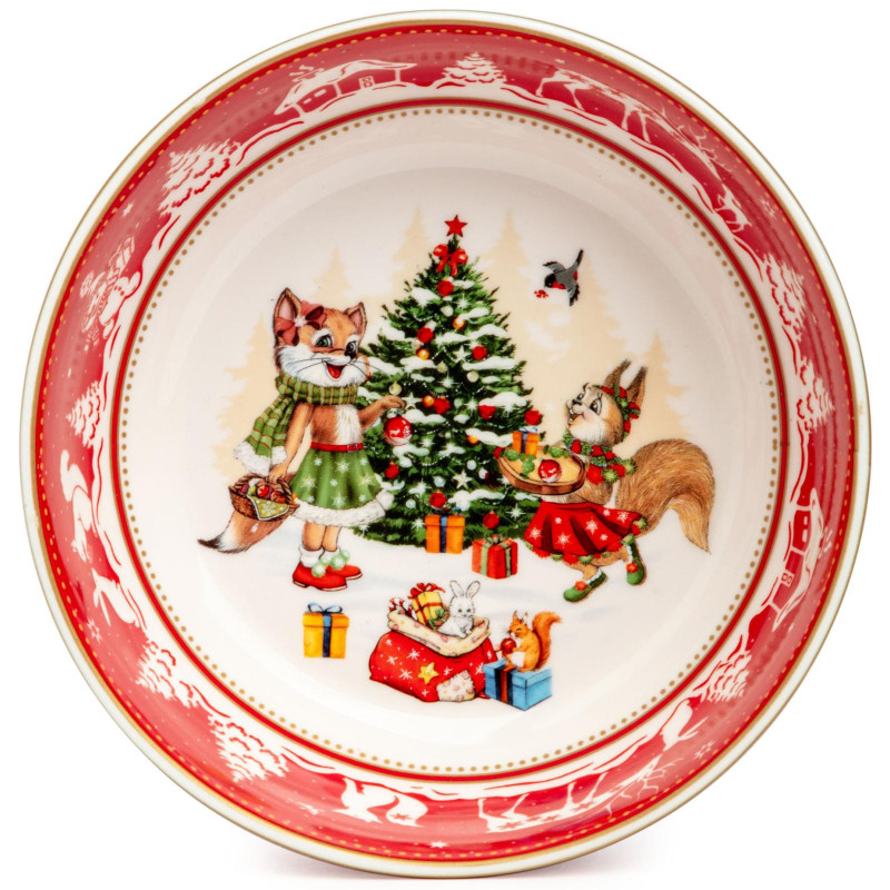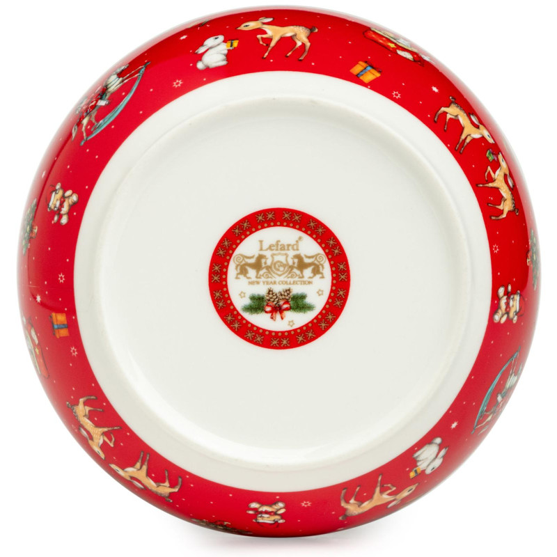 ТМ LEFARD New Year Collection для детей украсит праздничный новогодний стол и порадует Ваших детей в самые ожидаемые дни в году. С 1699 года указам Петра Первого Новый год празднуется в ночь на 1 января каждого года (по юлианскому календарю). Символом праздника стал дедушка с белой бородой, имя которого - Дед Мороз, и его помощница - девочка из снега по имени Снегурочка. Изделия с любимыми персонажами, лесными жителями и нарядной новогодней Елкой в веселом хороводе выполнены на тонкостенном высококачественном фарфоре. Посуда упакована в яркие коробки. Это прекрасный подарок. Продукция прошла сертификацию, безопасна для контакта с пищевыми продуктами. Можно использовать в СВЧ, не рекомендуется мыть в посудомоечных машинах во избежание повреждения золотой отводки (деколи) на изделиях.