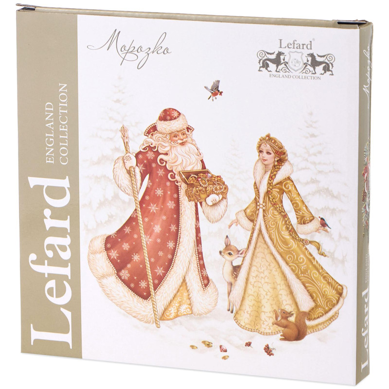 ТМ LEFARD эксклюзивная коллекция "Морозко" создана по мотивам любимой одноименной новогодней сказки, на которой выросли несколько поколений маленьких зрителей. Всем близка история доброй и красивой девушки Настеньки, которую злая мачеха отправила в лес на верную погибель. Детальные композиции, тонкие линии, высокое качество печати на тонкостенном белоснежном фарфоре превращает изделия в ожившие сюжеты. Разнообразие посуды и предметов сервировки добавят волшебства и красок в Ваш дом и порадует всех тех, кто сохранил в душе детскую радость и предвкушение чуда в самый ожидаемый праздник в году. Оригинальная упаковка. Прекрасный подарок. Вся продукция сертифицирована и безопасна для контакта с пищевыми продуктами. Можно использовать в СВЧ, не рекомендуется мыть в посудомоечных машинах во избежание повреждения золотой отводки (деколи) на изделиях.