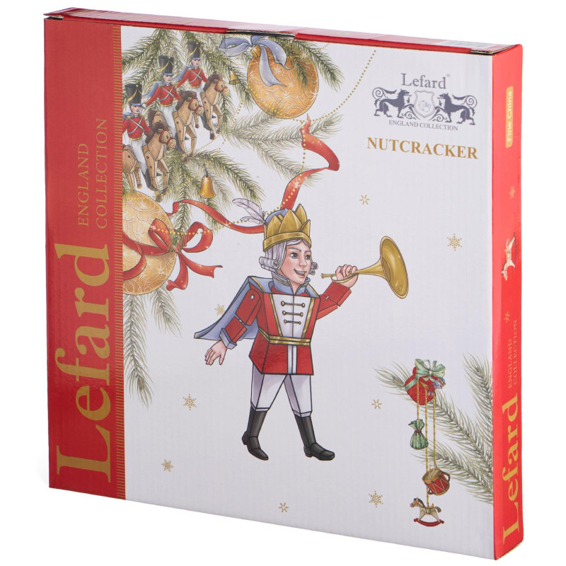 ТМ LEFARD эксклюзивная коллекция «Nutcracker» - Щелкунчик создана по мотивам одноименной истории, с которой знакомы все дети и взрослые. Волшебная история о новогоднем чуде идеально подходит для создания праздничного настроения. Широкий ассортимент тарелок, салатников, кружек, чайных пар поможет сервировать праздничный стол и создать сказочную атмосферу. Все изделия выполнены из качественного тонкого фарфора. Прямые современные формы, удобные объемы. Стильная, подарочная упаковка. Дарите сказку друзьям и близким людям! Можно использовать в СВЧ, не рекомендуется мыть в посудомоечных машинах во избежание повреждения золотой отводки (деколи) на изделиях.