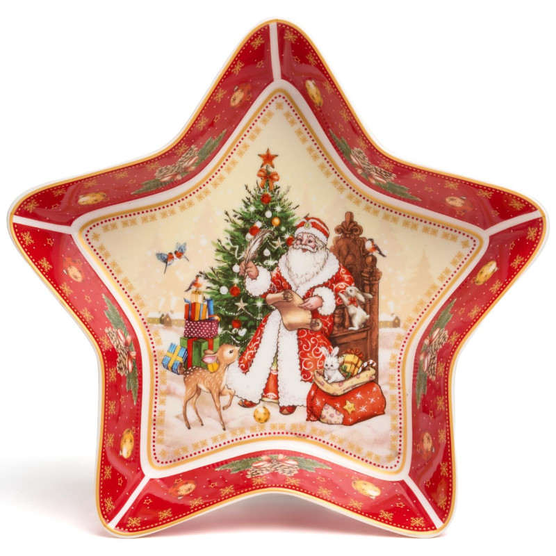 Блюдо-звезда "ДЕД МОРОЗ" 28*28*5 см красное (кор=8шт.) LEFARD 85-2081
