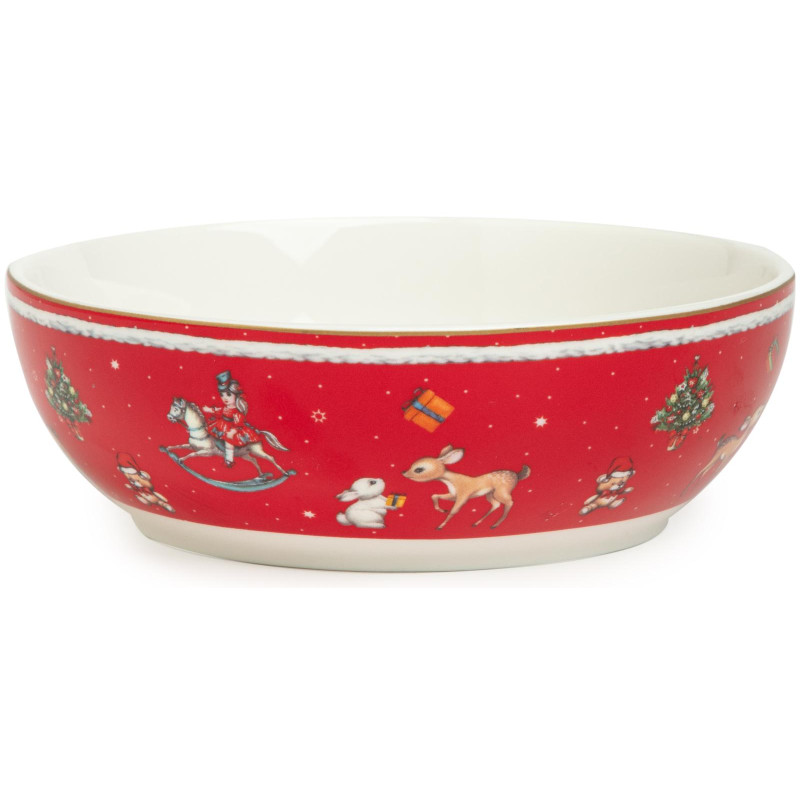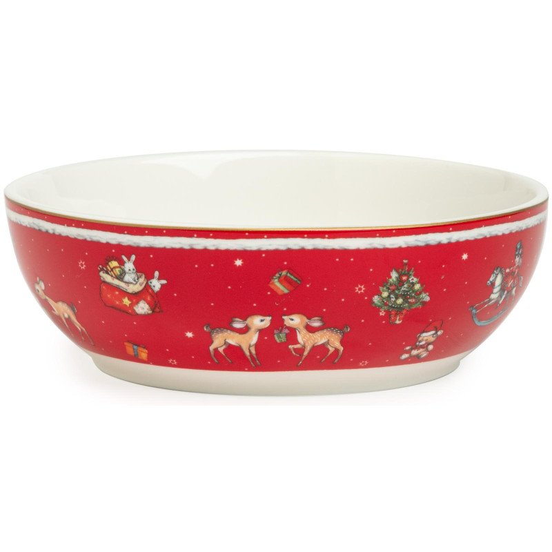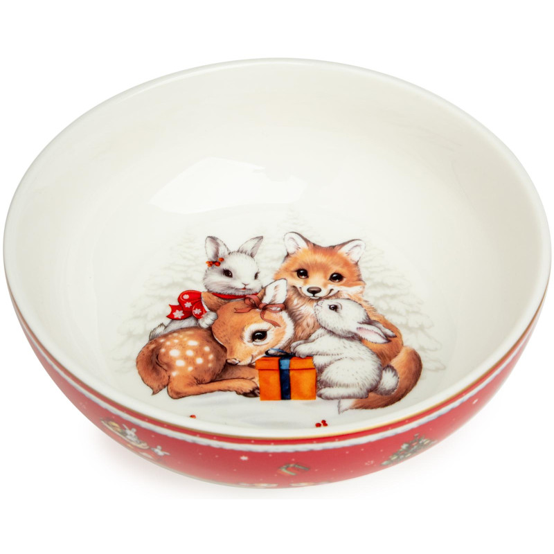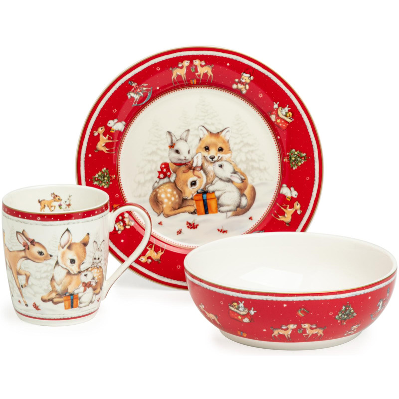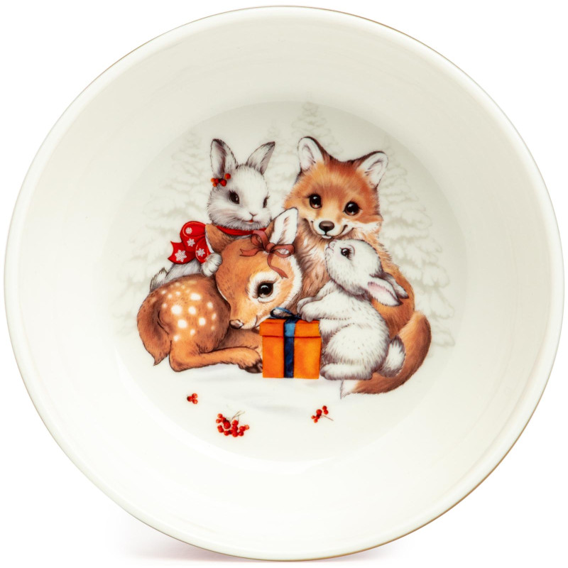 ТМ LEFARD New Year Collection для детей украсит праздничный новогодний стол и порадует Ваших детей в самые ожидаемые дни в году. С 1699 года указам Петра Первого Новый год празднуется в ночь на 1 января каждого года (по юлианскому календарю). Символом праздника стал дедушка с белой бородой, имя которого - Дед Мороз, и его помощница - девочка из снега по имени Снегурочка. Изделия с любимыми персонажами, лесными жителями и нарядной новогодней Елкой в веселом хороводе выполнены на тонкостенном высококачественном фарфоре. Посуда упакована в яркие коробки. Это прекрасный подарок. Продукция прошла сертификацию, безопасна для контакта с пищевыми продуктами. Можно использовать в СВЧ, не рекомендуется мыть в посудомоечных машинах во избежание повреждения золотой отводки (деколи) на изделиях.